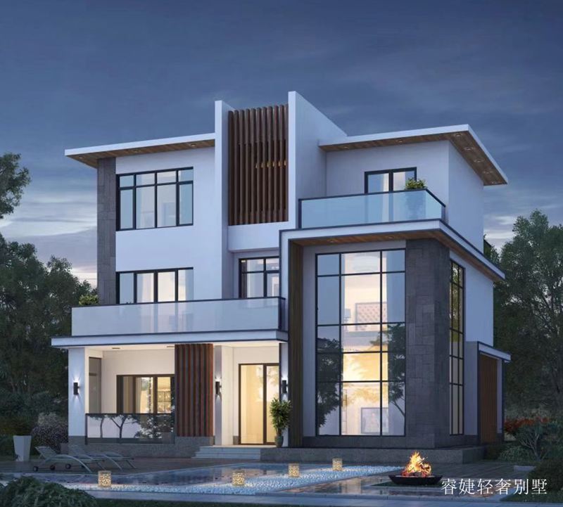 超現代時尚新農村三層半房屋設計圖